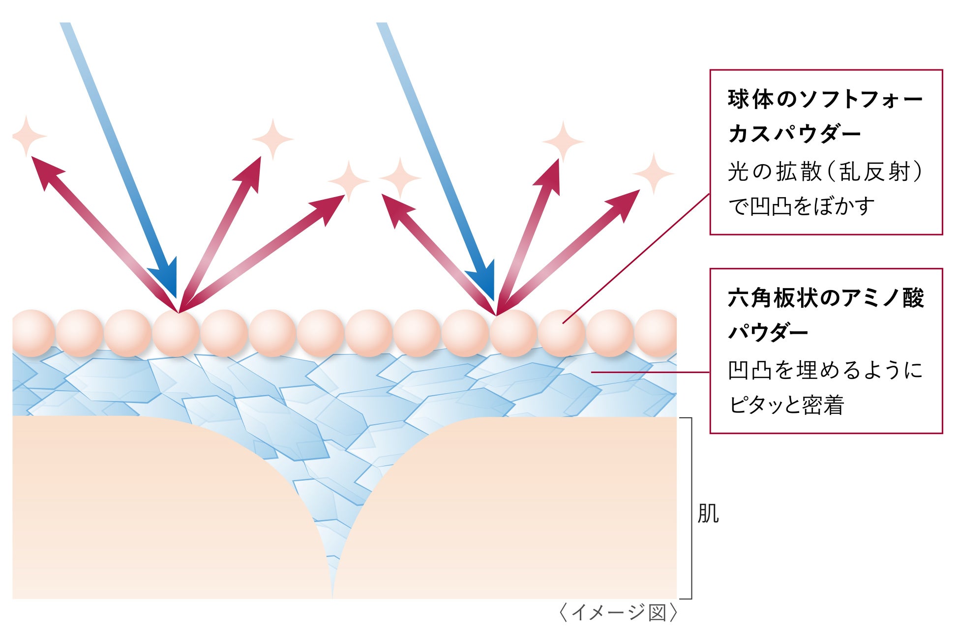 〈六角板状のアミノ酸パウダーで凹凸を補正*〉