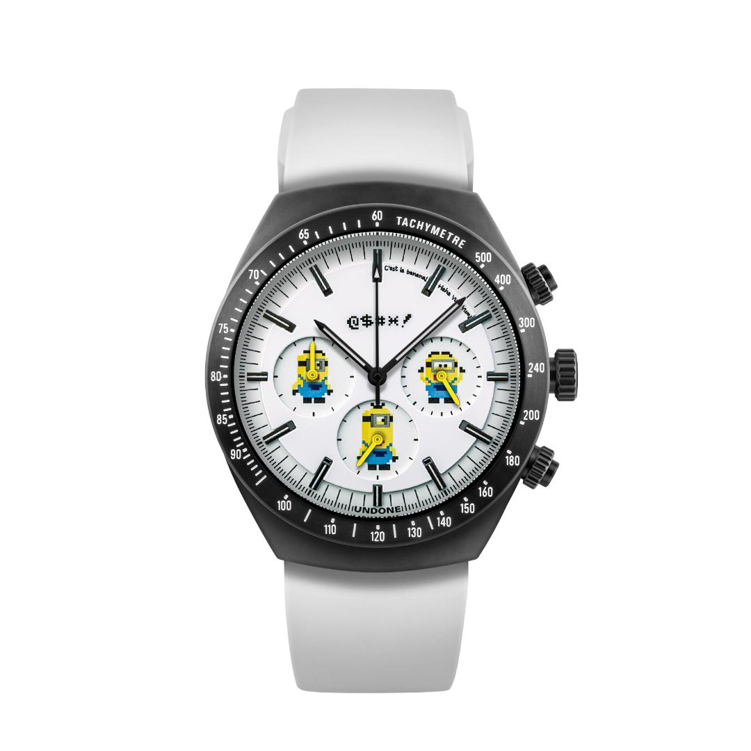 UNDONEは、ミニオンとのコラボレーションウォッチの第2弾モデル「8-bit Speedster」を発売いたします。エレガントなクリスプホワイトの文字盤に、ピクセルアートのポップなミニオンが描かれたデザインが特徴のクォーツ式モデルとなっています。