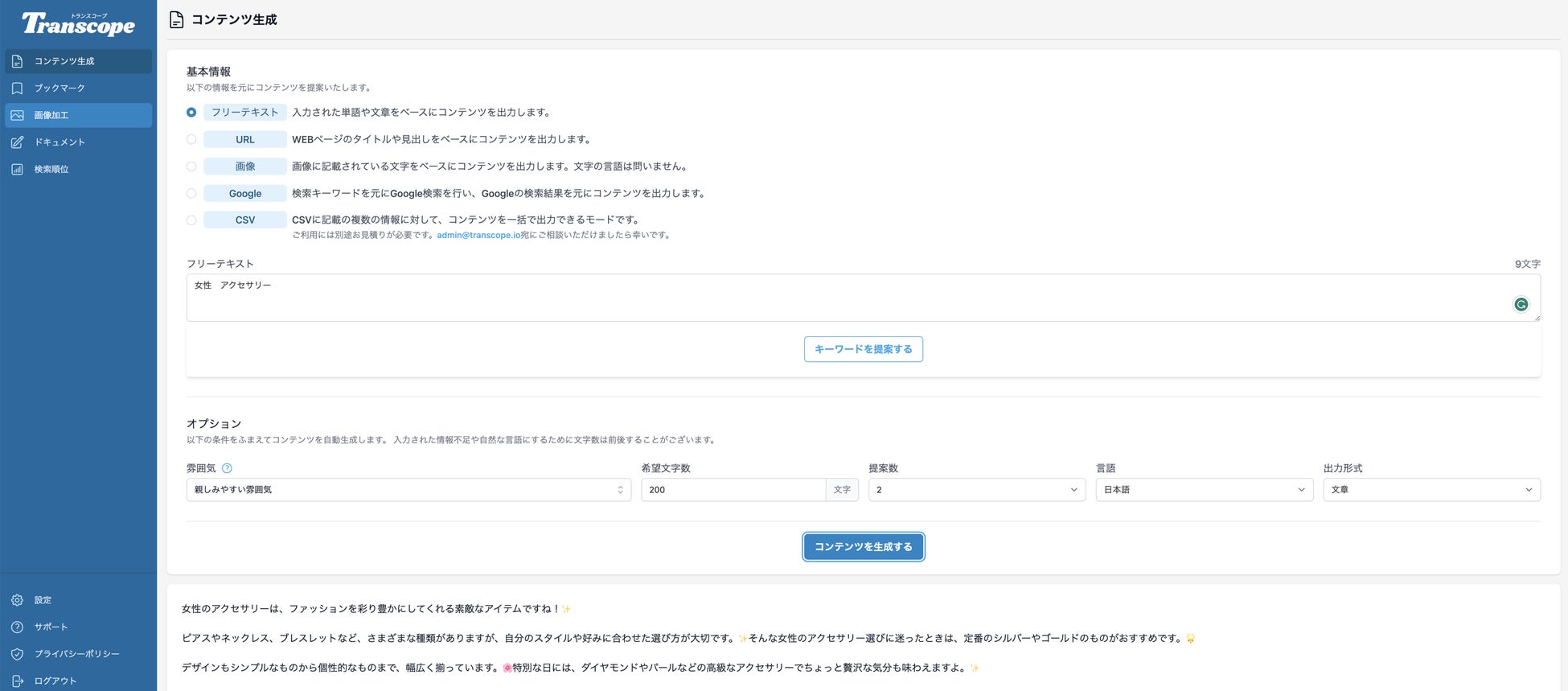 AIコピーライティングツール「Transcope(トランスコープ)」の企画・運営