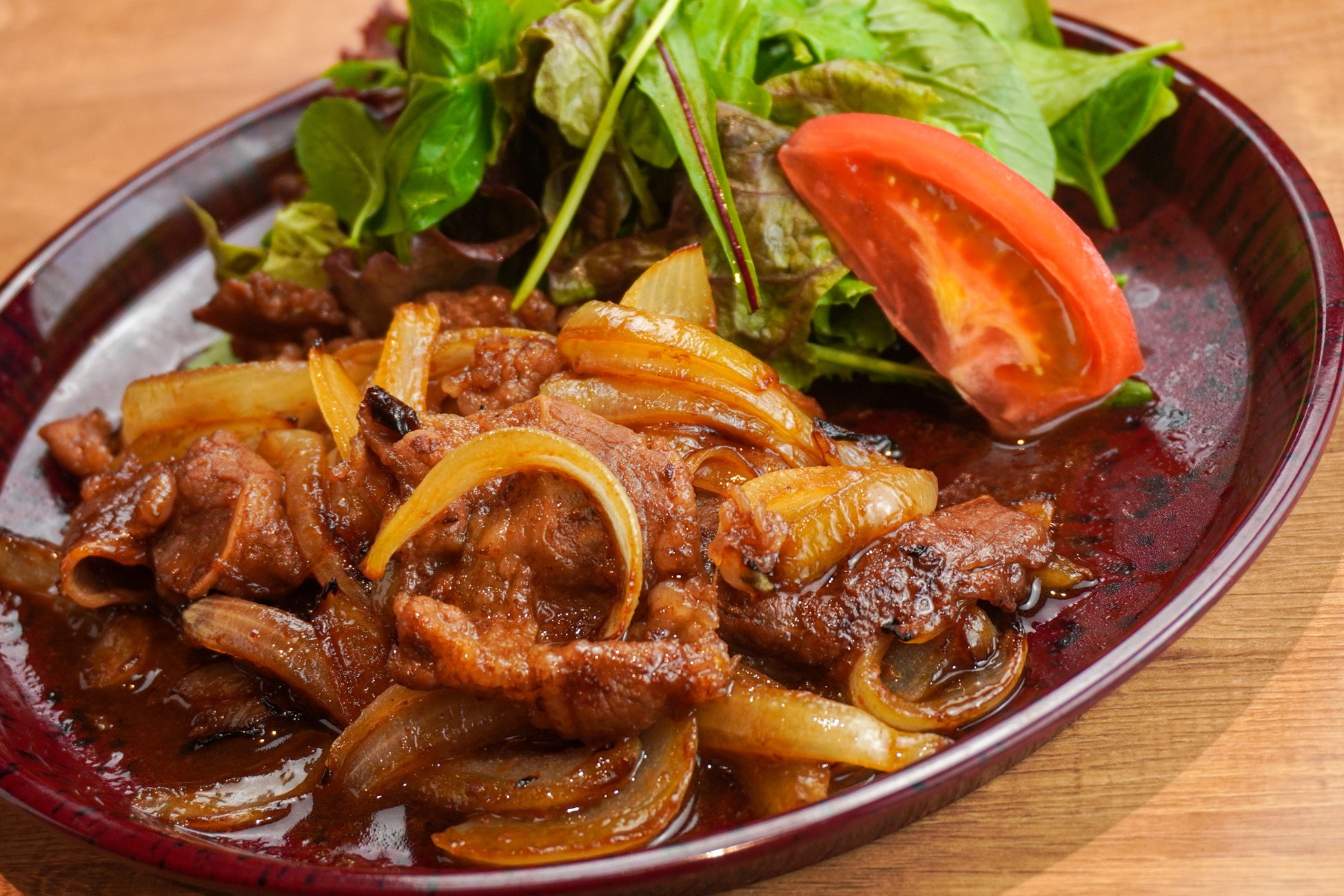 今回スペシャル定食としてお出しする『バラ焼定食』も青森県のご当地グルメ、牛のバラ肉と大量のタマネギを、醤油ベースの甘辛いタレで味つけし、鉄板で焼く料理です。発祥は、今から約50年前の三沢米軍基地前の屋台と言われ、そこから広まり、今では十和田市周辺を中心に青森県民に愛されています。