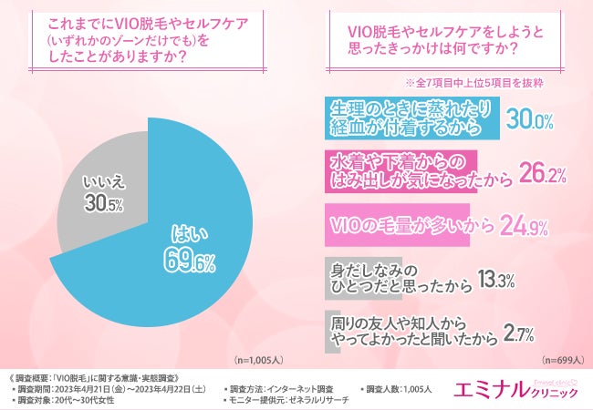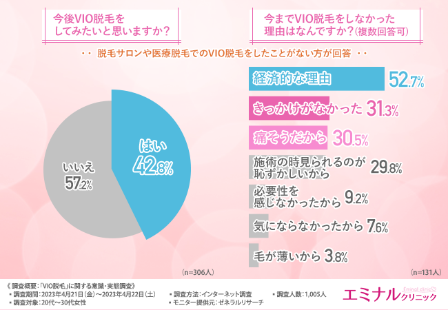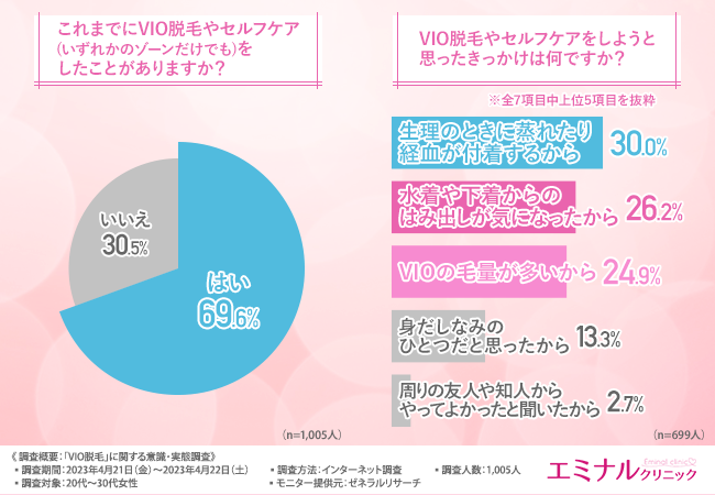 そこで今回、医療脱毛のエミナルクリニック(https://eminal-clinic.jp/lp01/?refmedia=11073)は、20代〜30代の女性を対象に、「VIO脱毛」に関する意識・実態調査を実施しました。