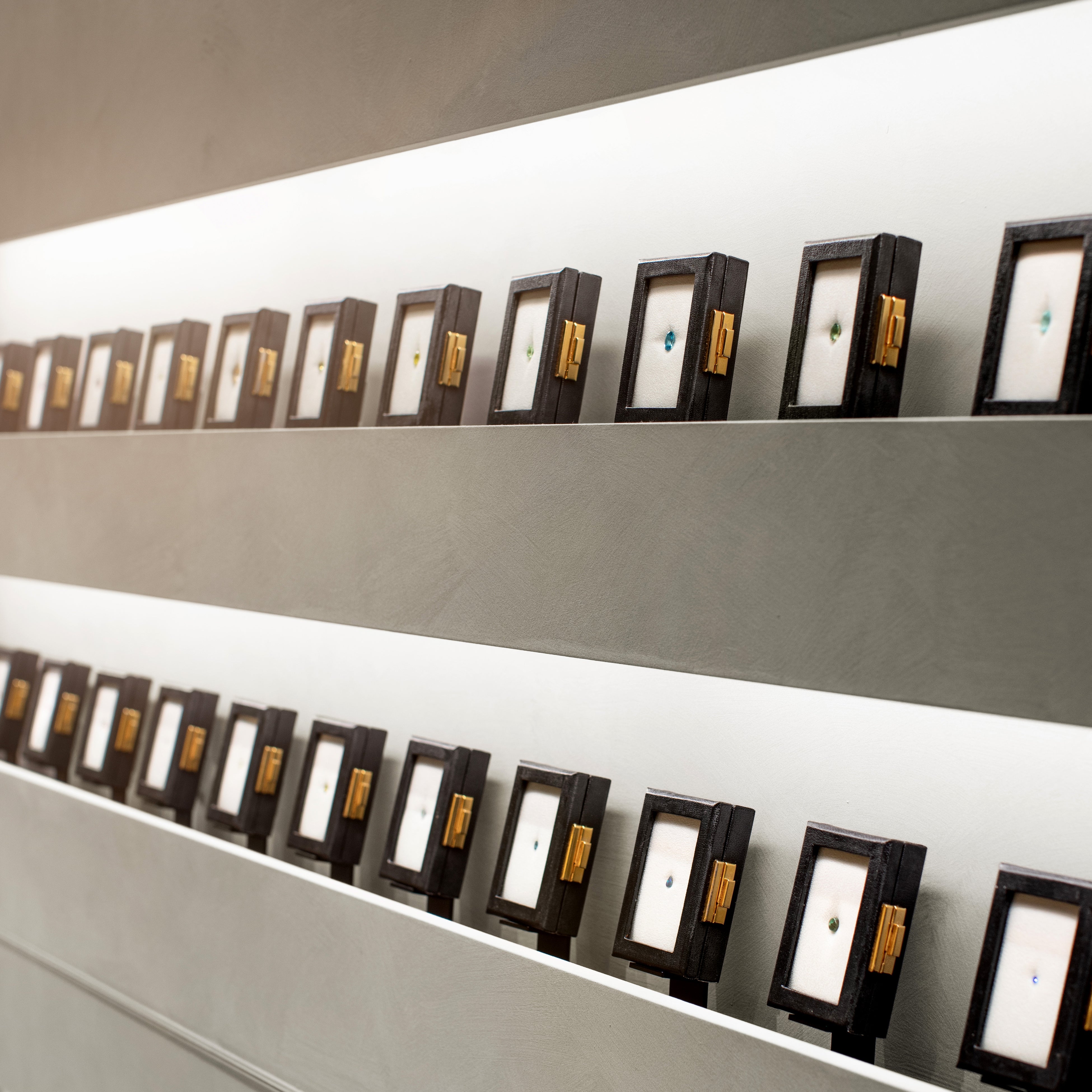 カラーストーンのルースがずらりと並ぶ店内。「個性豊かなカラーストーンと、その色彩を愛する人をつなぐ、いつでも、何度でも訪れたくなるような場所でありたい」。そんな想いとともに新しい一歩をここから踏み出します。