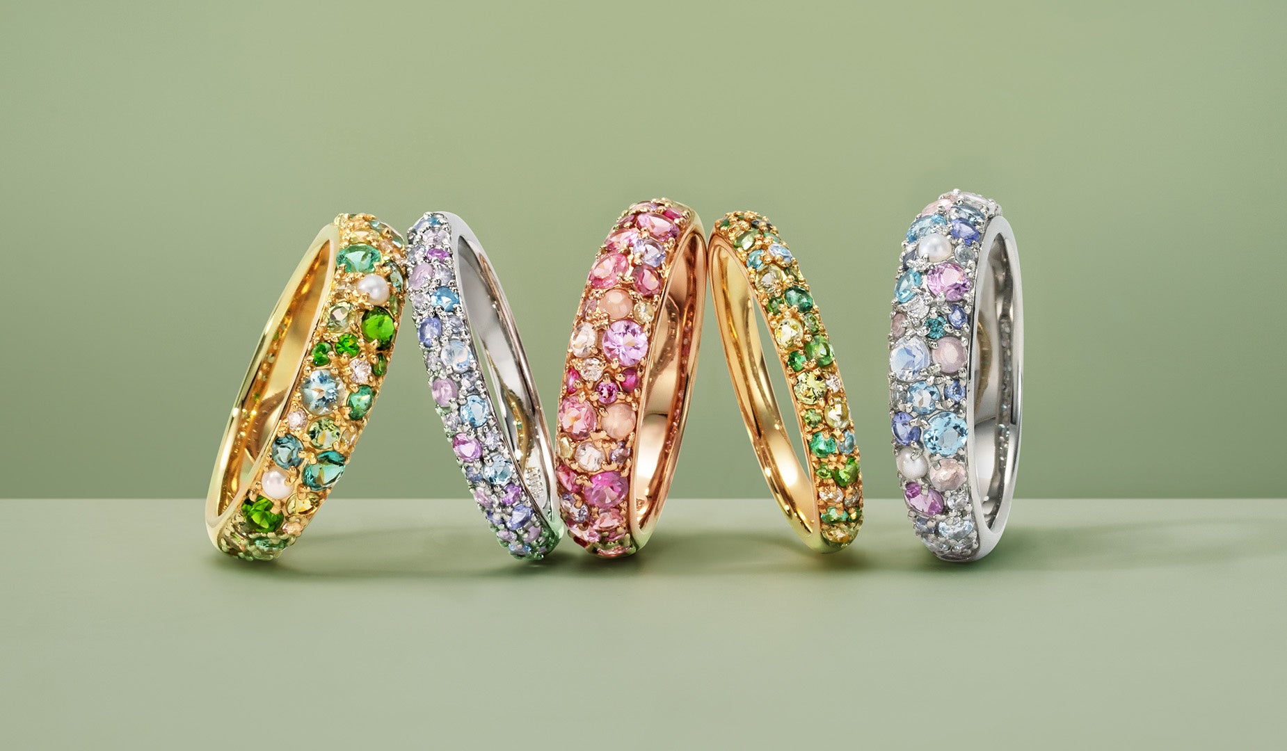 創業当初、ダイヤモンドが市場にあふれていた時代に、「すべての人が自分らしく、自由に楽しめるジュエリーを」という未来を描き、ひとも宝石も個性を魅力として楽しめるカラーストーンジュエリーの取り扱いをスタートしたことがブランドの原点です。
