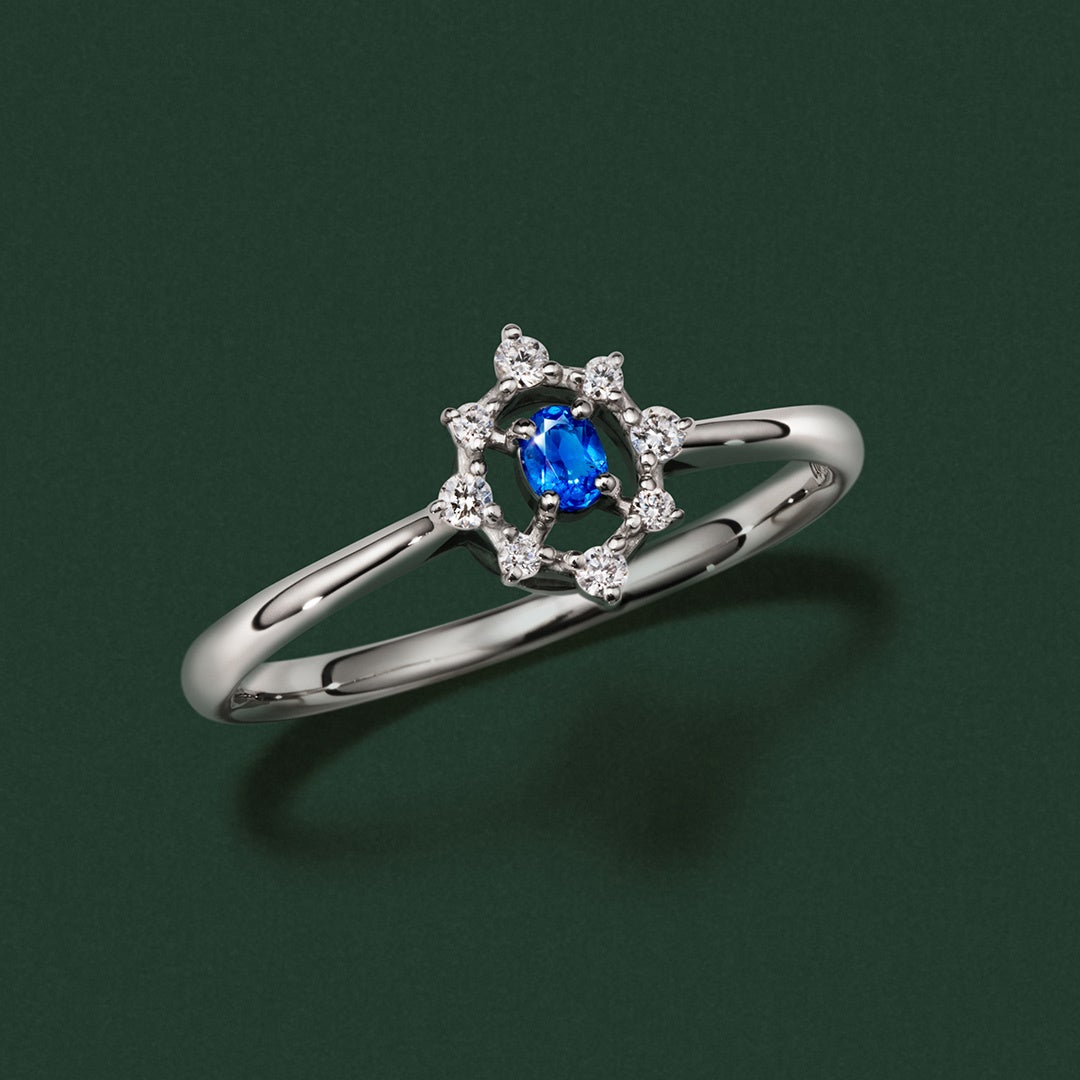 宇宙の碧とも称される、深く鮮やかな極彩色「アウイナイト」。希少性が増すばかりの煌めきを、オープンにあわせて限定数量で買い付け。8石のダイヤモンドで引き立てるデザインでご用意しました。肌に乗せるとサイズ以上の存在感を放ち、独特の色の魅力をご堪能いただけます。