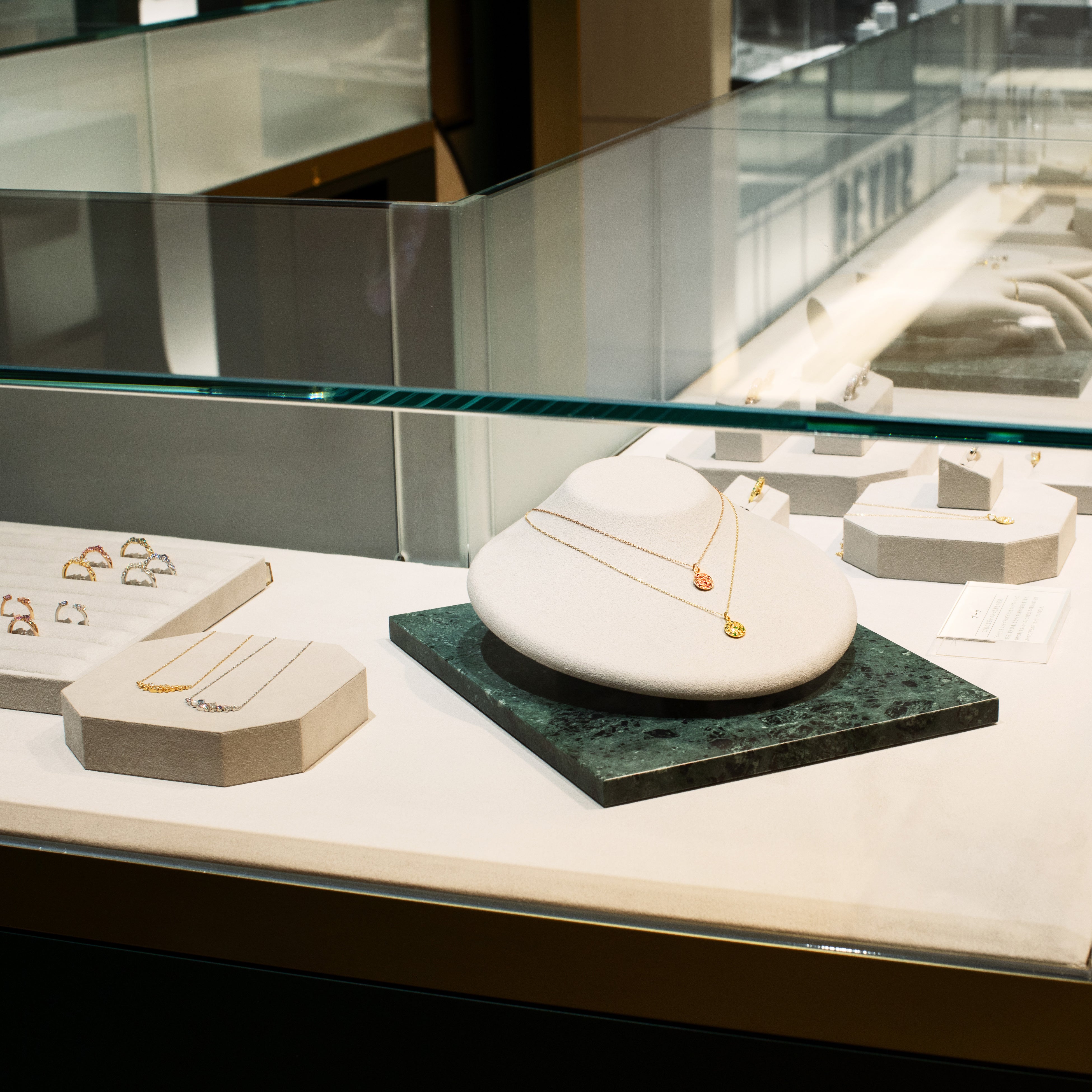 2009年創業のカラーストーンジュエリーブランド。世界20カ国以上・100種類以上のカラーストーンを用いた彩り豊かなジュエリーと、熟練の職人による繊細な仕上げが特徴です。東京(GINZA SIX、表参道ヒルズなど)をはじめ、全国に10店舗の直営店を展開しています。