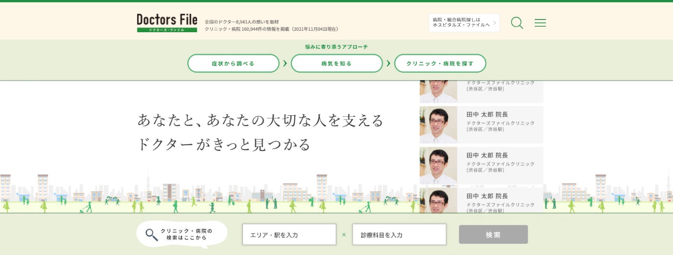 身体の症状・悩みに合わせ、全国のクリニック・病院、ドクターの情報を調べることができる、地域医療情報サイ