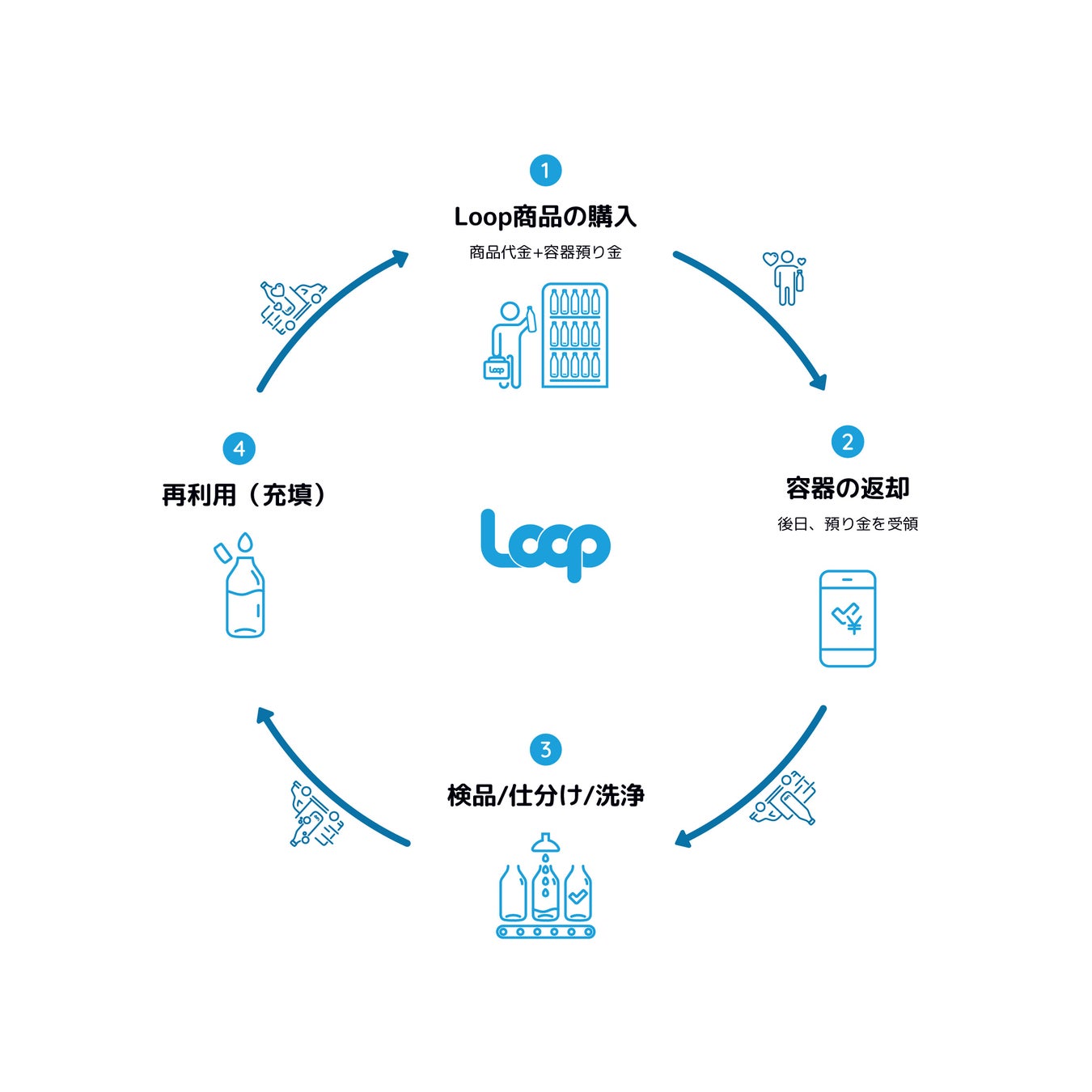 米国テラサイクル社が開発した、「捨てるという概念を捨てよう」というミッションのもと、リユース容器を利用した『循環型ショッピングプラットフォーム』です。従来使い捨て容器で販売されていた製品をリユース可能な容器で販売し、使用済み容器を回収し、洗浄・製品の再充填を行い再び販売します。Loopを通じて使い捨てプラスチックごみを削減するのみならず、"使い捨て文化"からの脱却を目指しています。