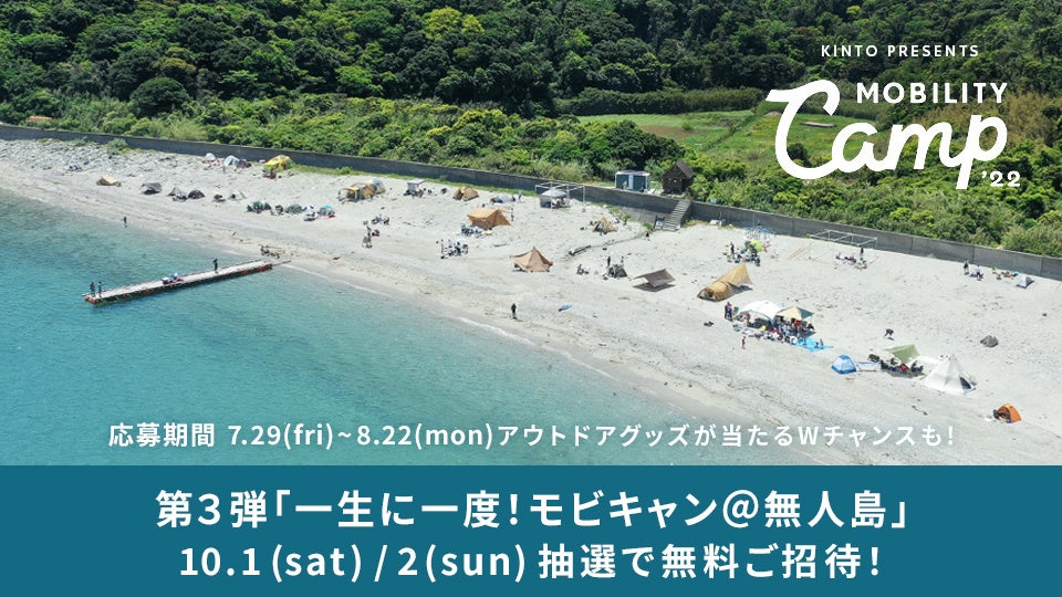 「KINTO presents モビリティキャンプ2022」第3弾「一生に一度!モビキャン@無人島」に無料ご招待