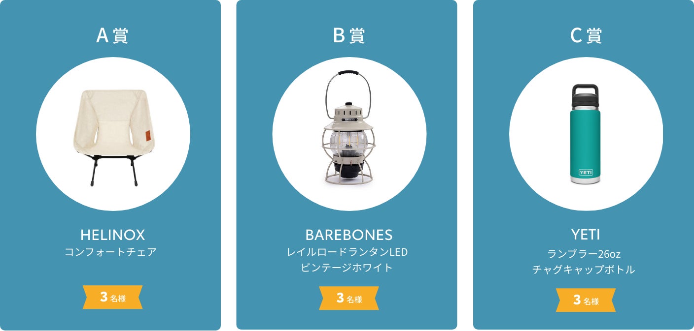 さらに今回は、残念ながら抽選に外れてしまった方にもアウトドアグッズが当たるWチャンスキャンペーンも実施します。ぜひ、奮ってご応募ください。