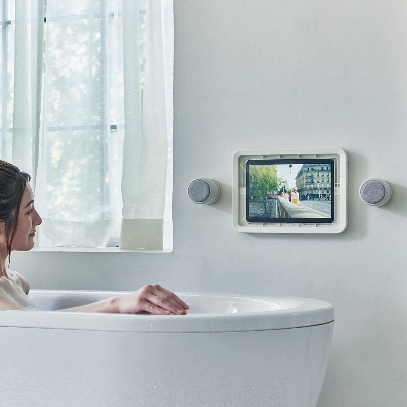おふろなど水回りで映画や音楽などをスマートフォンやタブレットで満喫できる、