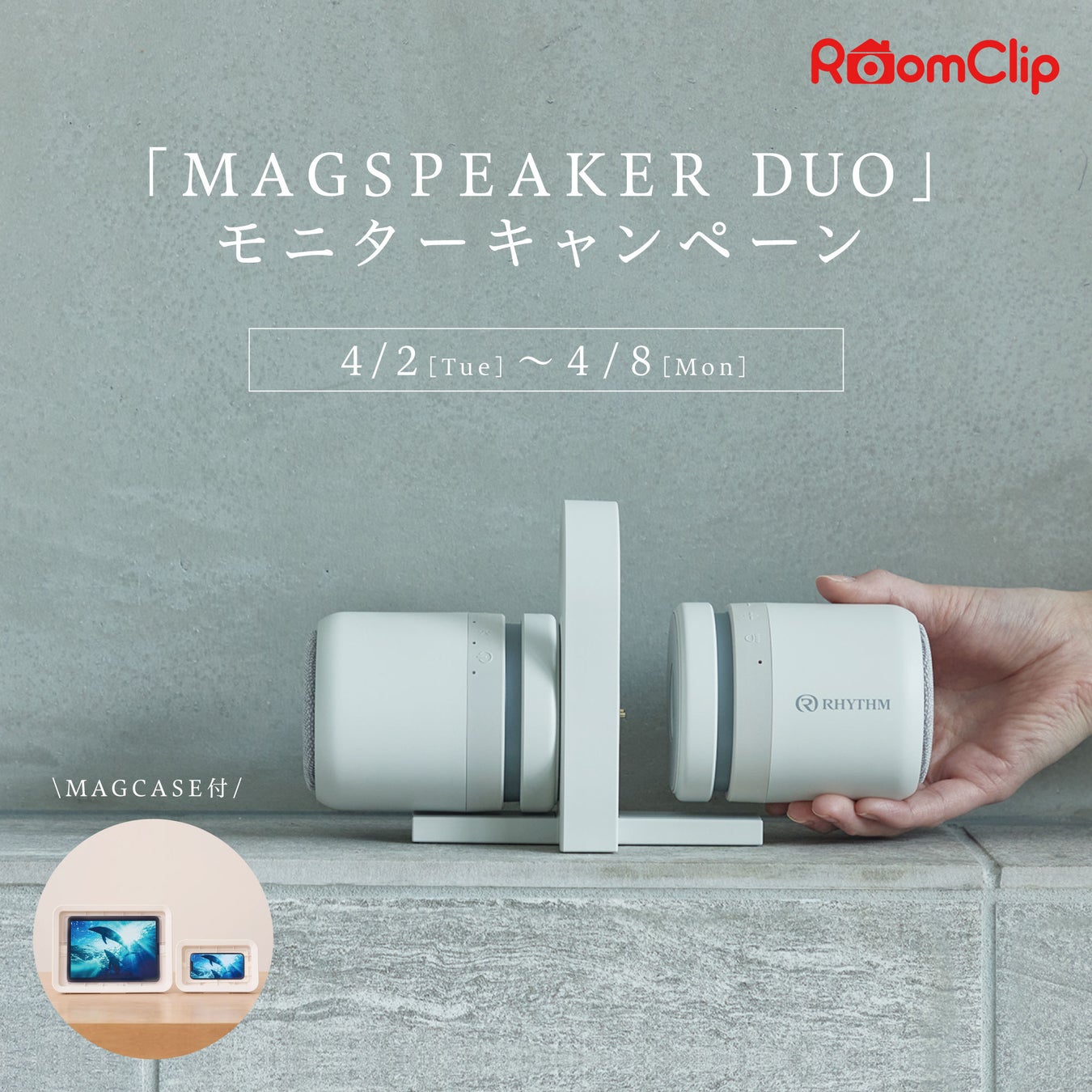 リズム株式会社(取締役社長 湯本武夫)は、住まいとインテリアの写真共有サービス「RoomClip(ルームクリップ)」を運営するルームクリップ株式会社(本社:東京都渋谷区、代表取締役社長:高重正彦)と、どこでも最高の音体験、くつろぎの防水ポータブルシアタースピーカー「MAGSPEAKER DUO(マグスピーカーデュオ)」モニターキャンペーンを、2024年4月2日(火)~ 4月8日(月)まで実施します。