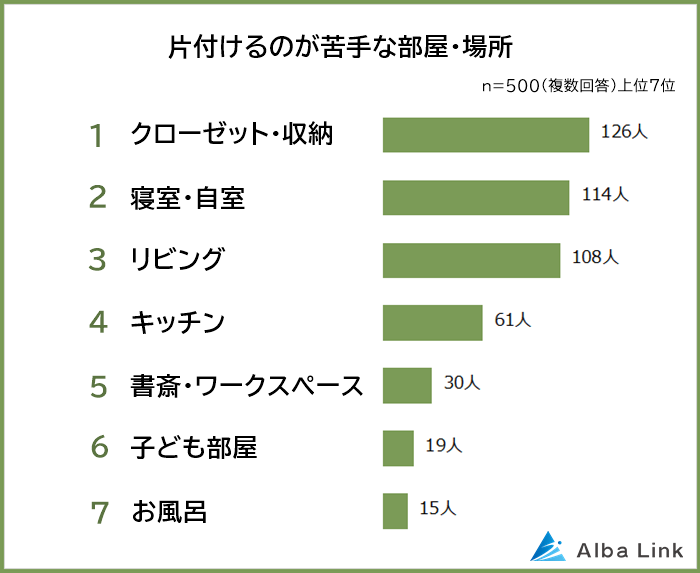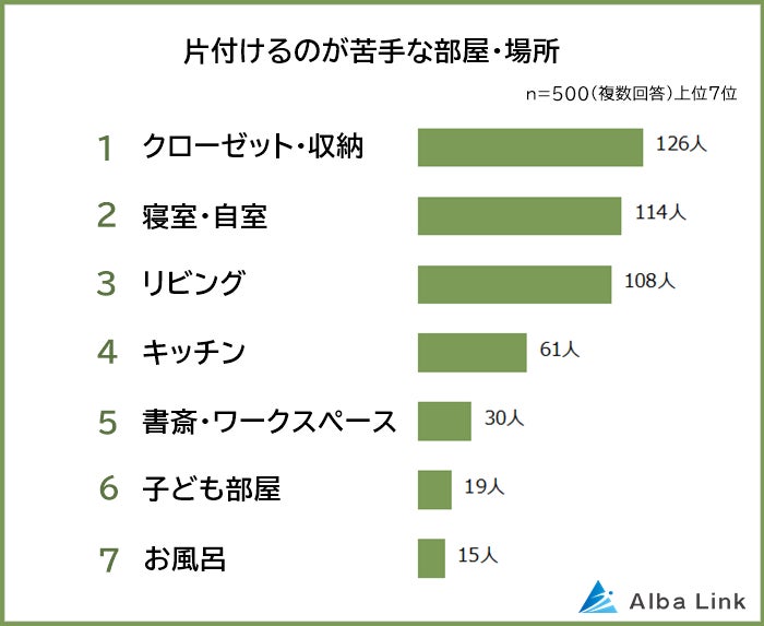 今回、株式会社AlbaLink( https://albalink.co.jp/ )が運営する訳あり物件買取ナビ( https://albalink.co.jp/realestate/ )は、片付けが苦手な男女500人を対象に「部屋や家を片付けられない理由」についてアンケート調査を実施しました。
