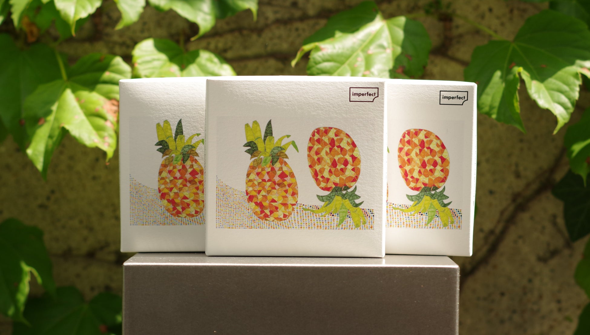 imperfect様とのお取組みも今作品で、第4段目となりました。今回パッケージを彩らせていただいたのは相田さんの「ふたつのパイン」です。