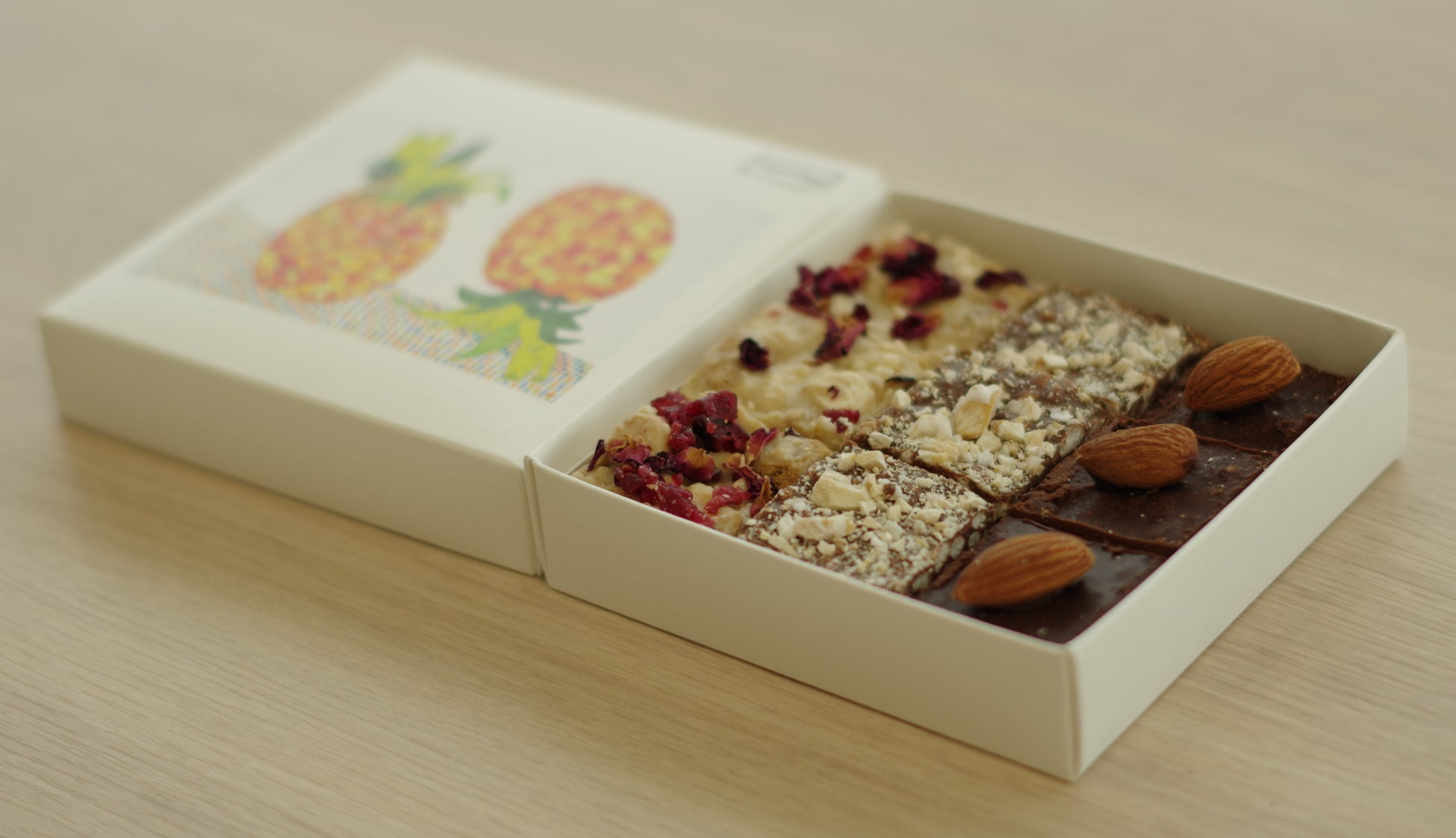 障害者アーティストの所得支援を目指すアートビリティとのコラボレーションとして発売した「アート&カカオ」は、2022年9月の発売以降、多くのお客様にギフト用としても、ご自宅用としても、さまざまなシーンでご利用いただき、大変好評をいただいております。今回は、新たに相田大希さんの作品「ふたつのパイン」をパッケージデザインに使用し、第4弾として発売致します。