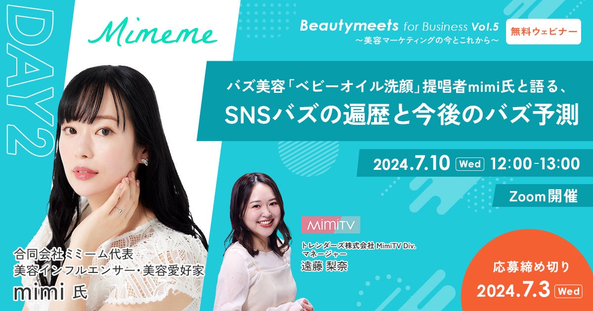 <DAY 2・7/10(水)>バズ美容「ベビーオイル洗顔」提唱者mimi氏と語る、SNSバズの遍歴と今後のバズ予測
