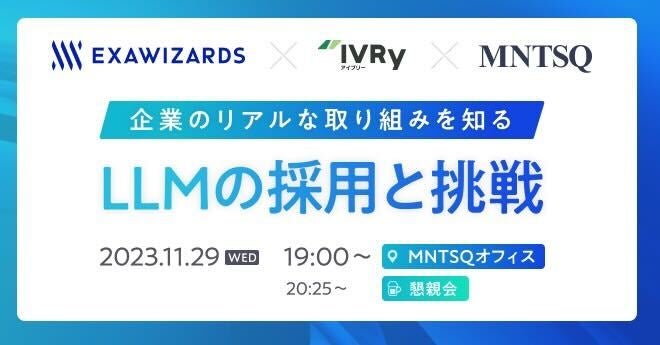 電話AI SaaSのIVRy、エクサウィザーズ、MNTSQと共催で、オフラインイベント「LLMの採用と挑戦 - 企業のリアルな取り組みを知る」を開催決定