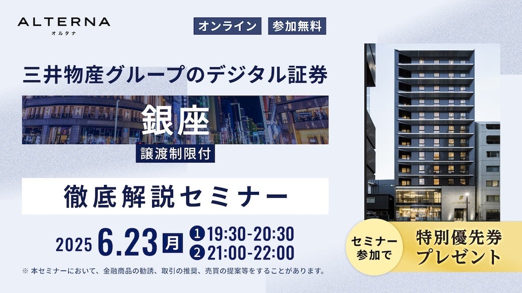 「三井物産グループのデジタル証券~銀座~(譲渡制限付)」徹底解説セミナーを開催(6/23)