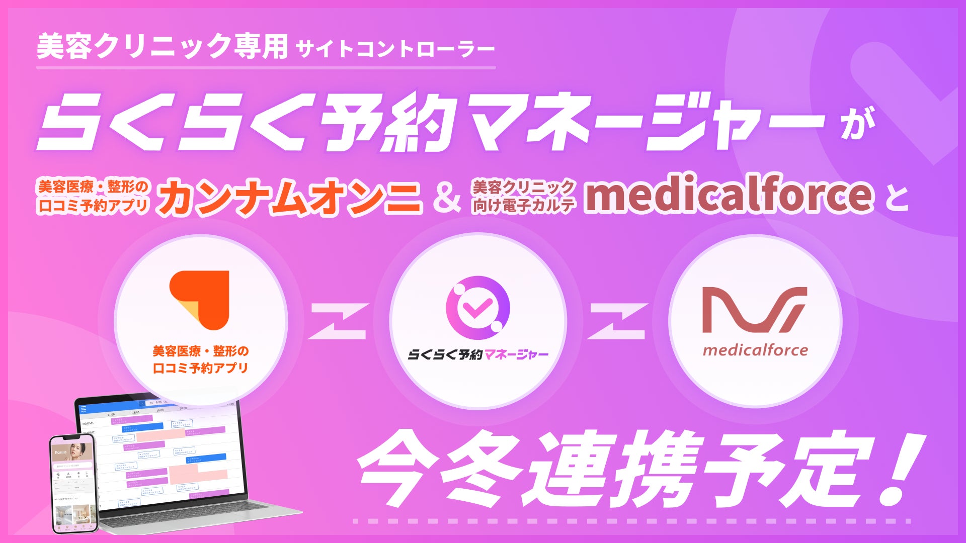 業界初*1 美容クリニック向けサイトコントローラー「らくらく予約マネージャーfor美容クリニック」とクリニック向けのオールインワンSaaS「medicalforce」が今冬、連携開始