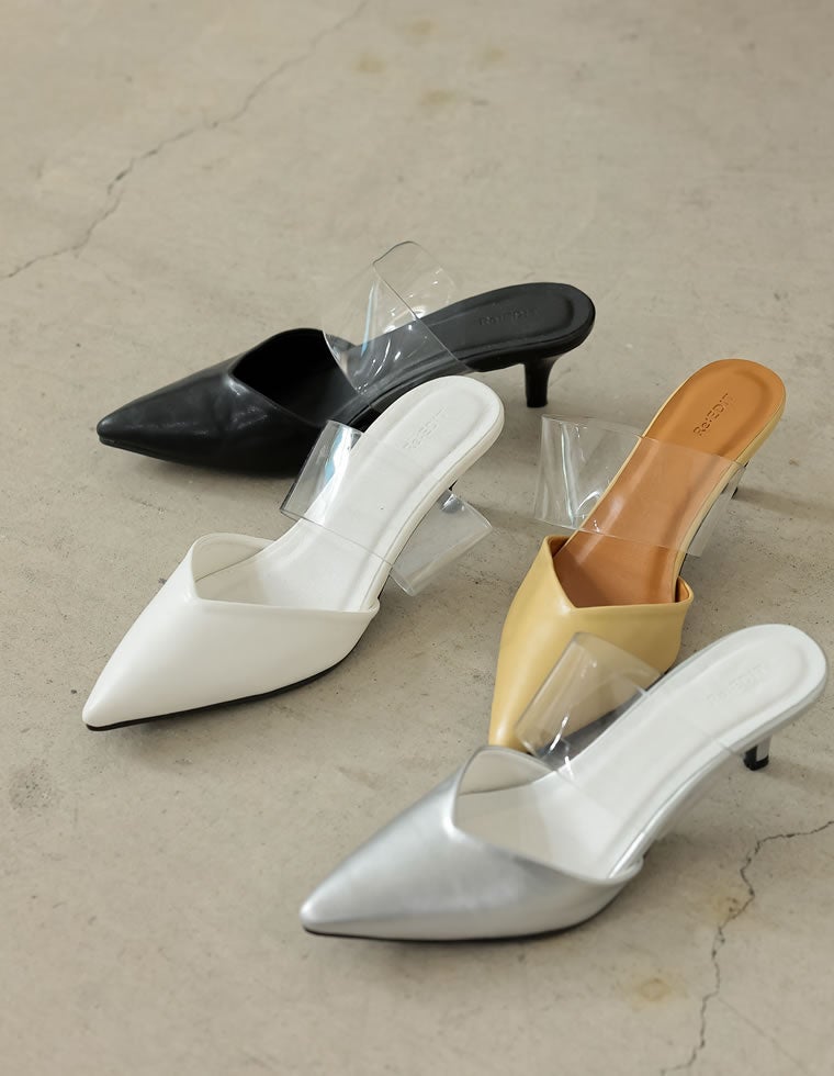 クリアベルトポインテッドトゥVカットミュール