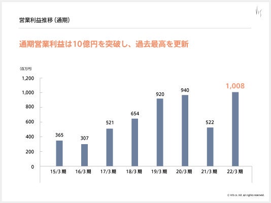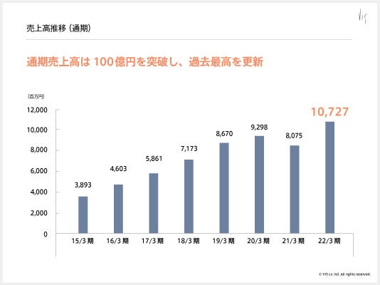 <ヴィス>過去最高の売上高、営業利益、受注高を更新(2022年3月期通期決算を発表)