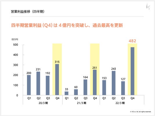 四半期営業利益(Q4)は4億円を突破し、過去最高を更新しました。