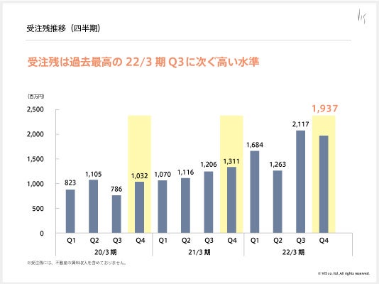 受注残は過去最高の22/3期Q3に次ぐ高い水準です。