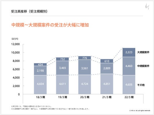 中規模(30百万以上~1億円未満)~大規模案件(1億円以上)の受注が大幅に増加しました。