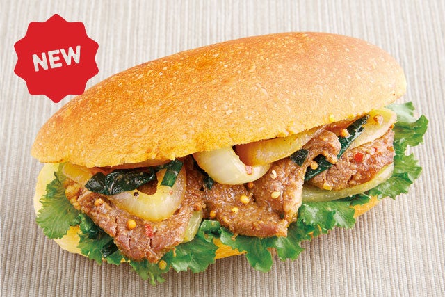 北海道の代表的なソウルフード「ジンギスカン」を贅沢にサンド。コクのあるしょうゆベースのタレに漬け込んだ羊肉がやみつきになる美味しさ!