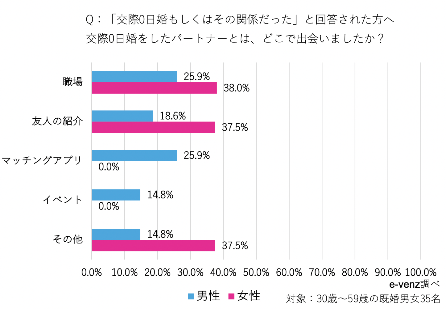 e-venzでは、交際0日婚の経験がある35名に、どこで交際0日婚を始めたのかを調査してみました。