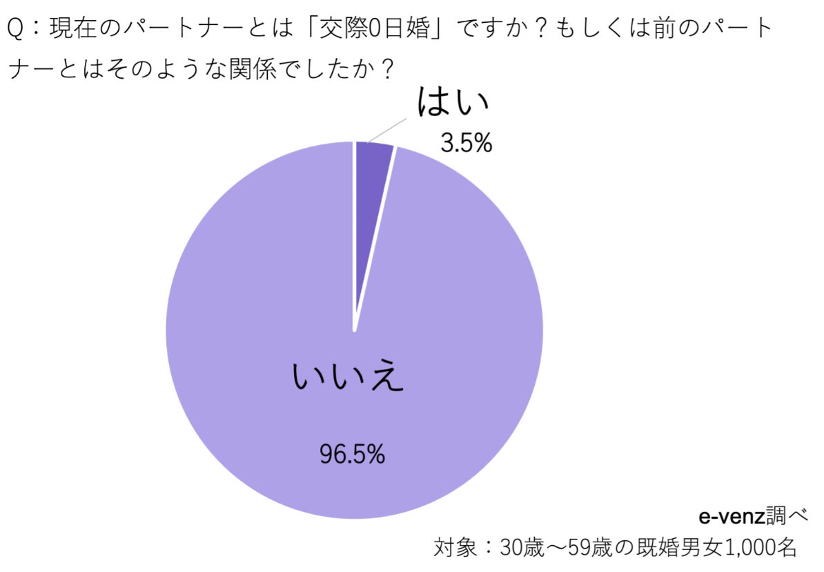 全体で3.5%が「交際0日婚もしくはその関係だった」と回答しています。経験者は少数だとわかりました。