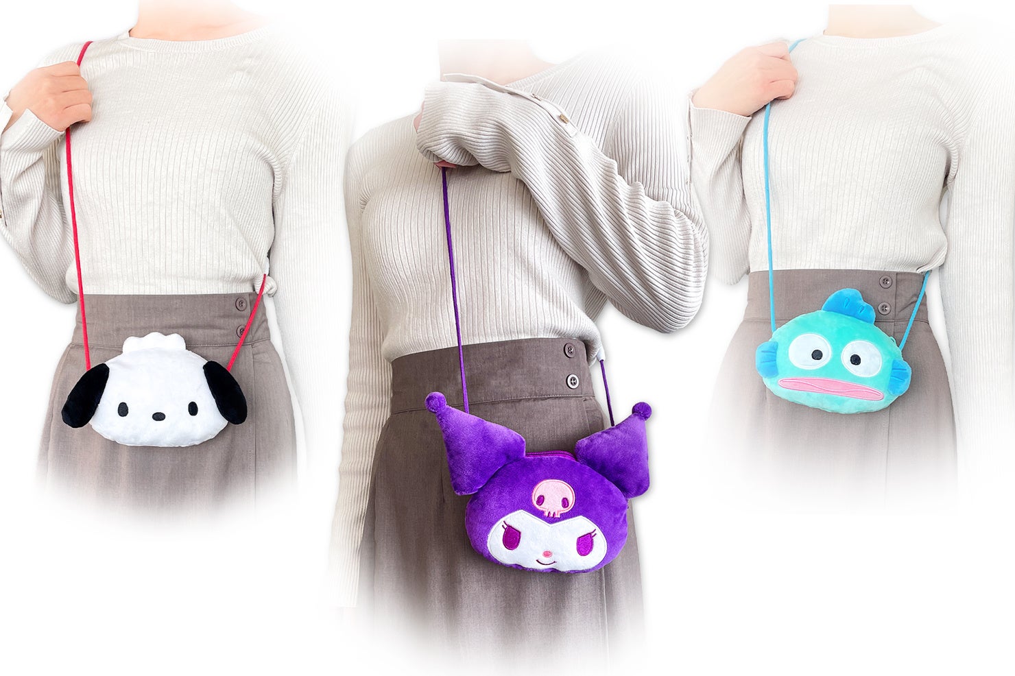 株式会社サンリオの大人気キャラクター「シナモロール」、「ポムポムプリン」、「ポチャッコ」、「クロミ」、「マイメロディ」、「ハンギョドン」のフェイス型ひも付きポーチは、ヌイグルミのようなぽってりとした可愛さとモフモフな触り心地がたまらない、持っているだけでも癒されるアイテムです。