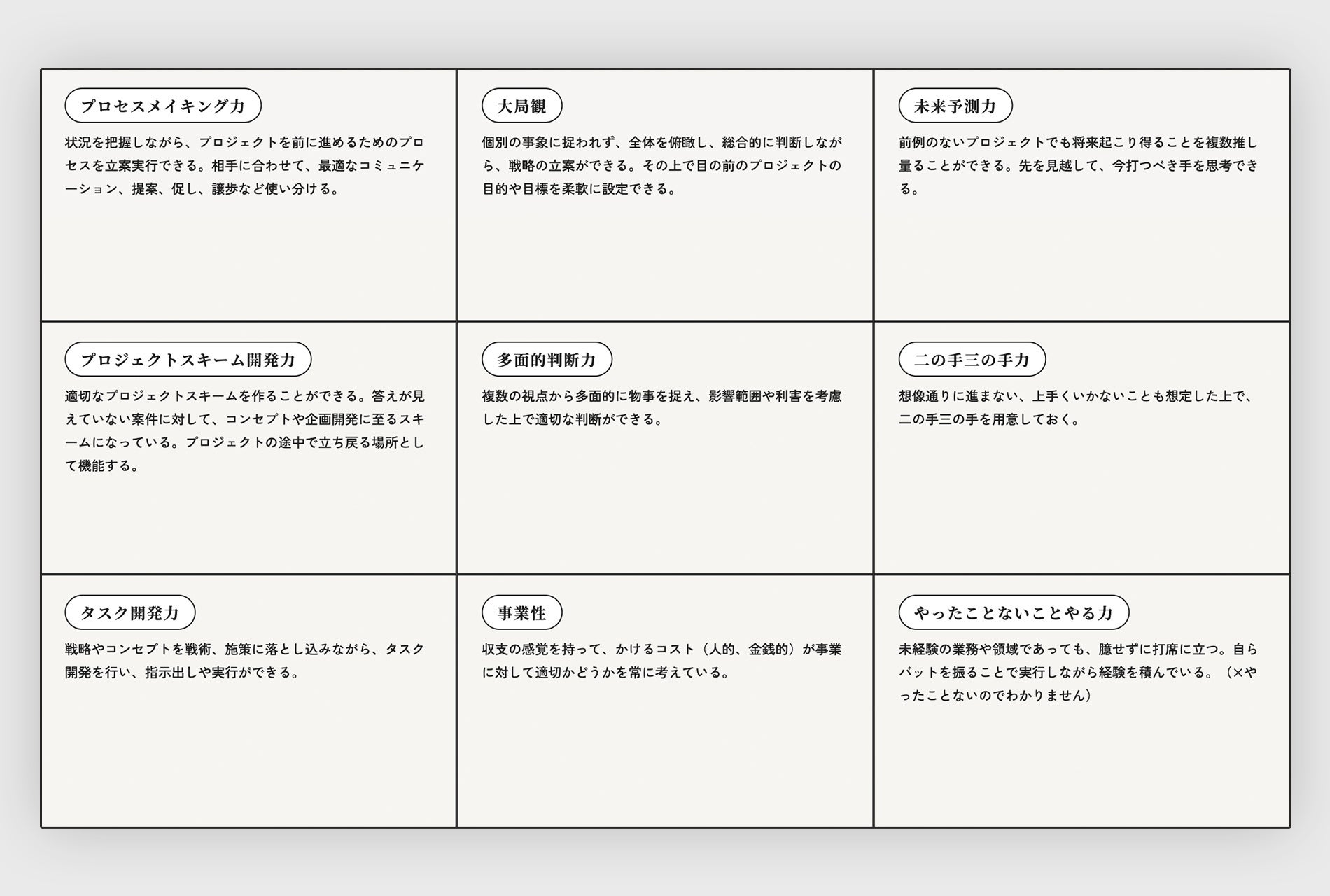 新卒・中途・管理職研修、新規事業開発、ワークショップ企画、評価制度や採用企画、価値観・ビジョンの浸透や、インナーブランディングまで。