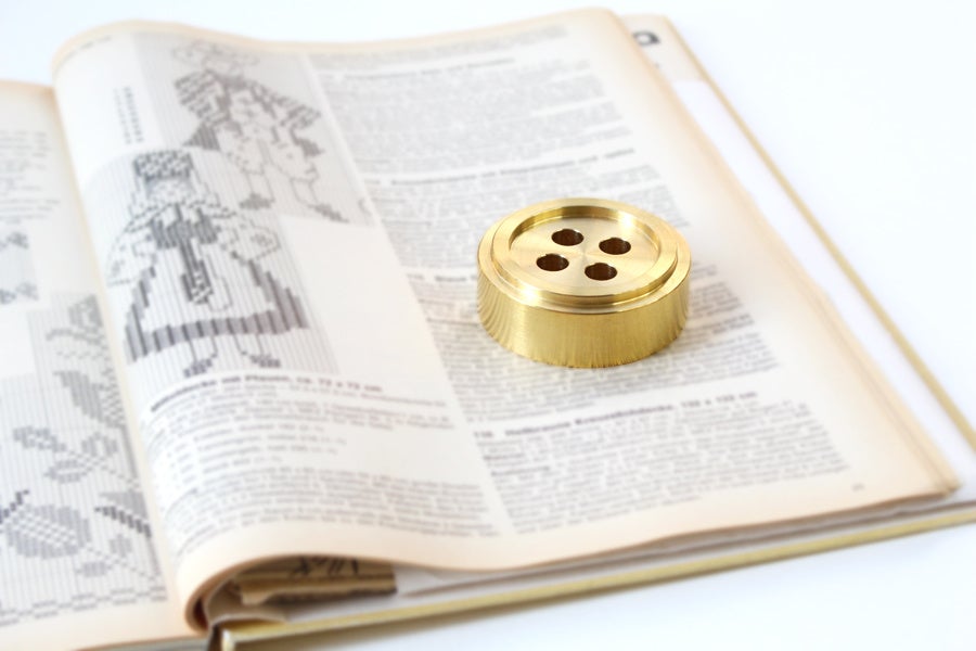 職人の精密な技術から生まれたこの文ちんは、ボタンをモチーフにしたやさしいフォルムが特徴です 。洋裁やハンドメイドの時間をより上質で快適なものにするのはもちろん、ブックストッパーやペーパーウェイトとしてもお使いいただけます 。