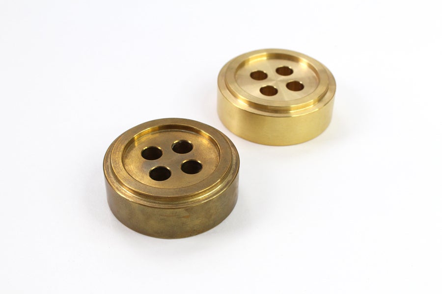 今回復活する「真ちゅうの文ちん (360g)」は、Cohanaの定番「南部鉄器の文ちん (約360g)」 と、重ねてスタッキングできるように設計されており、お好みに合わせて、2つの素材からお選びいただけます。