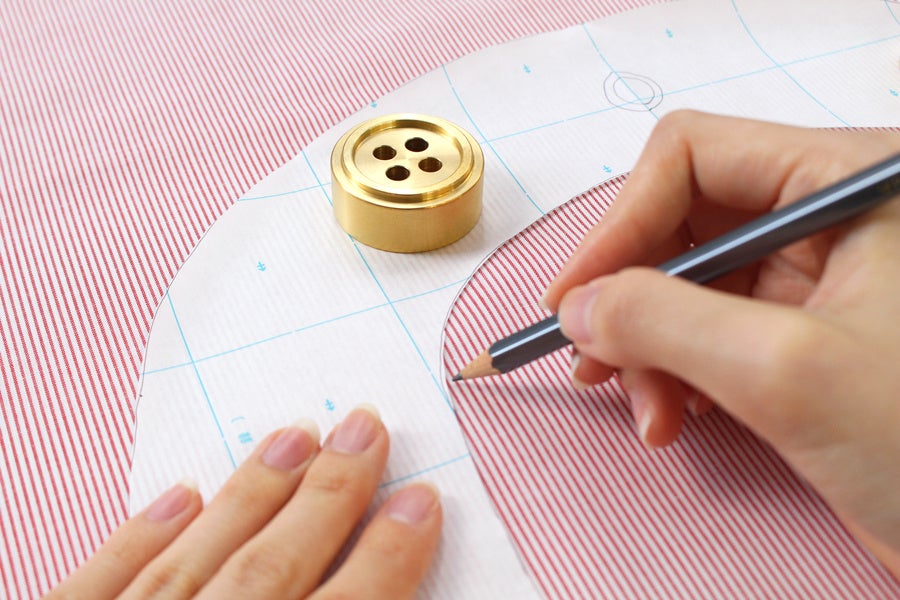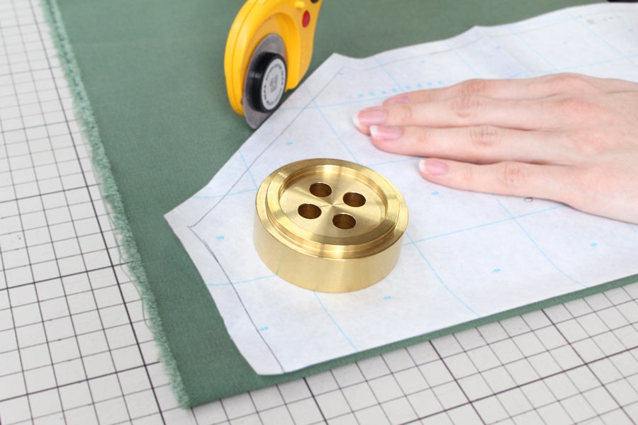 厚手の生地や大きなパターンも、裁断線から少し離れた位置でしっかり固定できる、頼れる重さの約360g。型紙がずれることなく、正確な作業をサポートします。ボタン穴はペン立てとしても活躍し、存在感のある佇まいは、作業台の上で静かに光をたたえます。