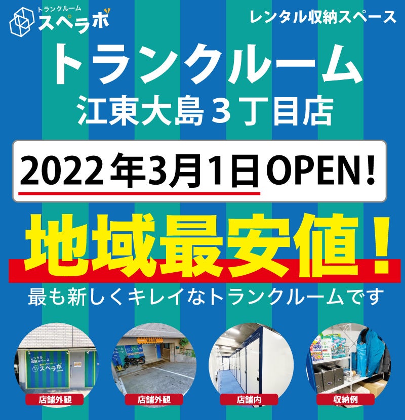 【3月1日(火)オープン】見学から契約、解約まで完全非接触・非対面!更にお申し込みからご利用まで最短3時間!都内にて絶賛運営中のトランクルーム【スペラボ】が江東区大島に出店!!