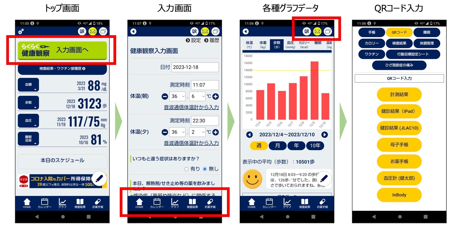 同アプリは新型コロナウイルスの感染者が国内で初めて確認された2020年1月からわずか2か月後にリリースされ、学校や企業単位で対象者の体温・体調報告を管理できる『らくらく健康観察』と共に、個人・団体に関わらず、多くの利用者の健康管理にお役立て頂いております。現在では、ウォーキングイベント用システム『てくてく歩数集計』や健診結果リアルタイム閲覧システム『健シロウ』とも連携してお使い頂くことが可能です。