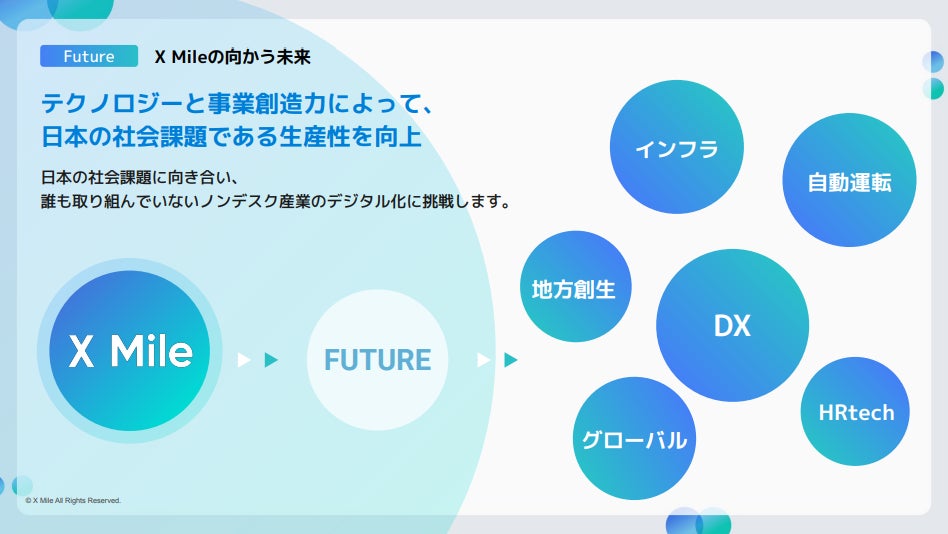 X Mileは中長期で、令和を代表する大規模ベンチャー企業になるミッションを掲げ、海