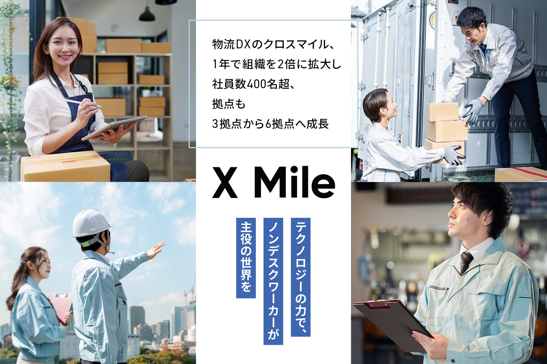 ノンデスク産業向けSaaS・HRプラットフォームを提供するX Mile株式会社(読み:クロスマイル、本社:東京都新宿区、代表取締役:野呂 寛之、以下「当社」)は、業界の大きな課題である物流2024年問題への支援や、2030年問題に備え、前年比2倍の人員拡充を実施し、設立5年目で社員数が400名を突破したことをお知らせいたします。また、拠点も東京、大阪、福岡に加え、新たに名古屋、広島、札幌を新設し計6拠点へと拡大しました。
