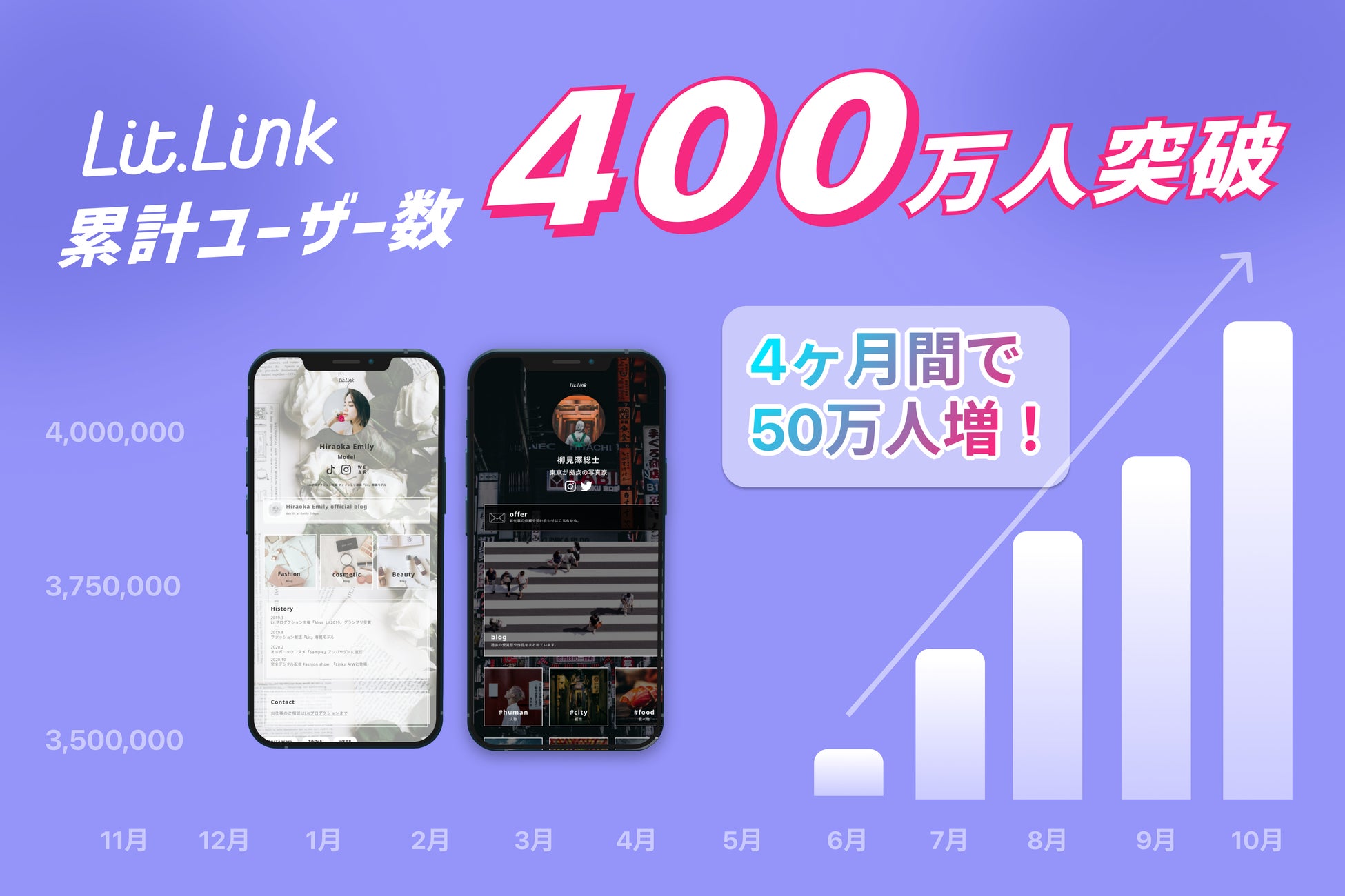 ブランディングプロフィールツール「lit.link」が累計ユーザー数400万人を突破