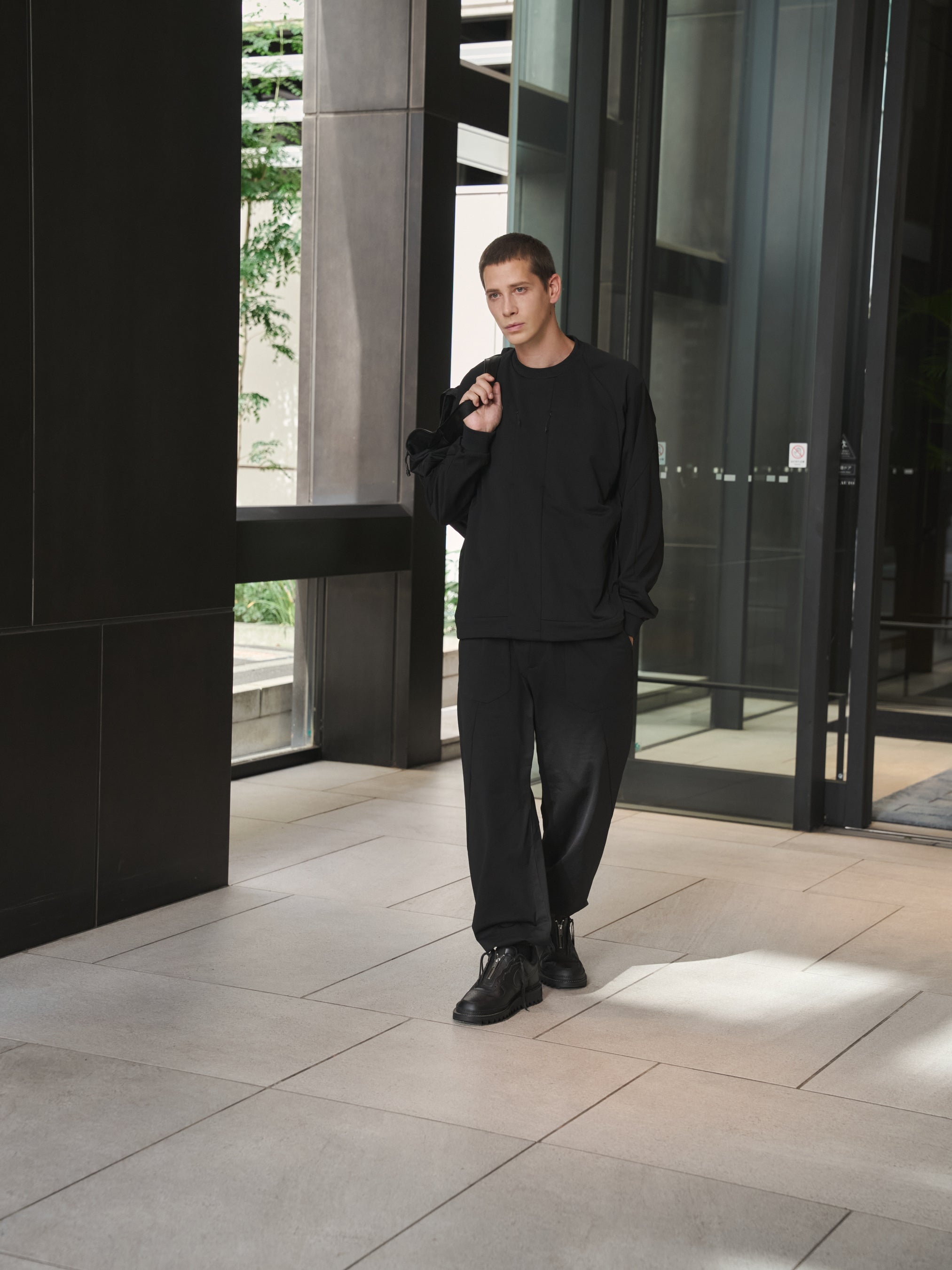 クルーネックスウェットは、スウェットをベースにBLKが得意とする着心地を重視したパターンメイキング、デザイン切り替え線に沿わせたスラッシュポケットを採用するなど洗練された1着。