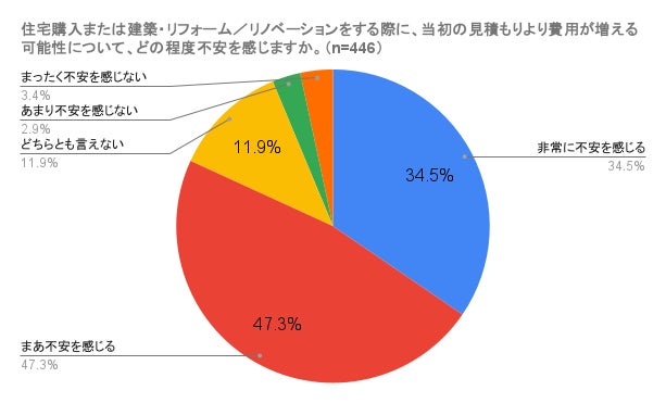 予算3割増しを招く「オプション増額」について、住宅購入・建築・リフォーム・リノベーション検討者446名にアンケート調査を実施したところ、次のような結果となりました。