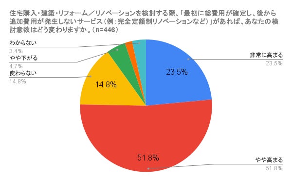●当初提示された総費用から一切の追加費用が発生しないサービスがあれば、75.3%が「検討意欲が高まる」と回答。不安層においては約9割の検討意欲が向上。