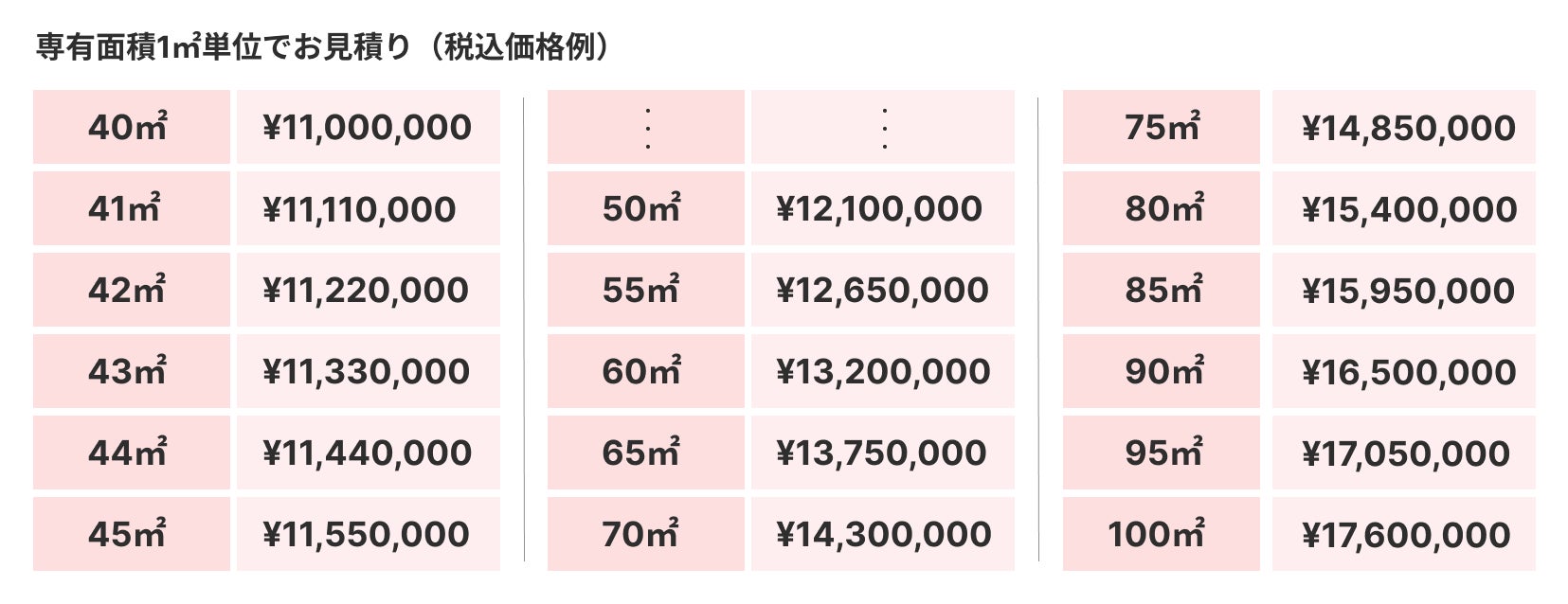 1. 完全定額制(1㎡単位)で最後まで価格がブレない