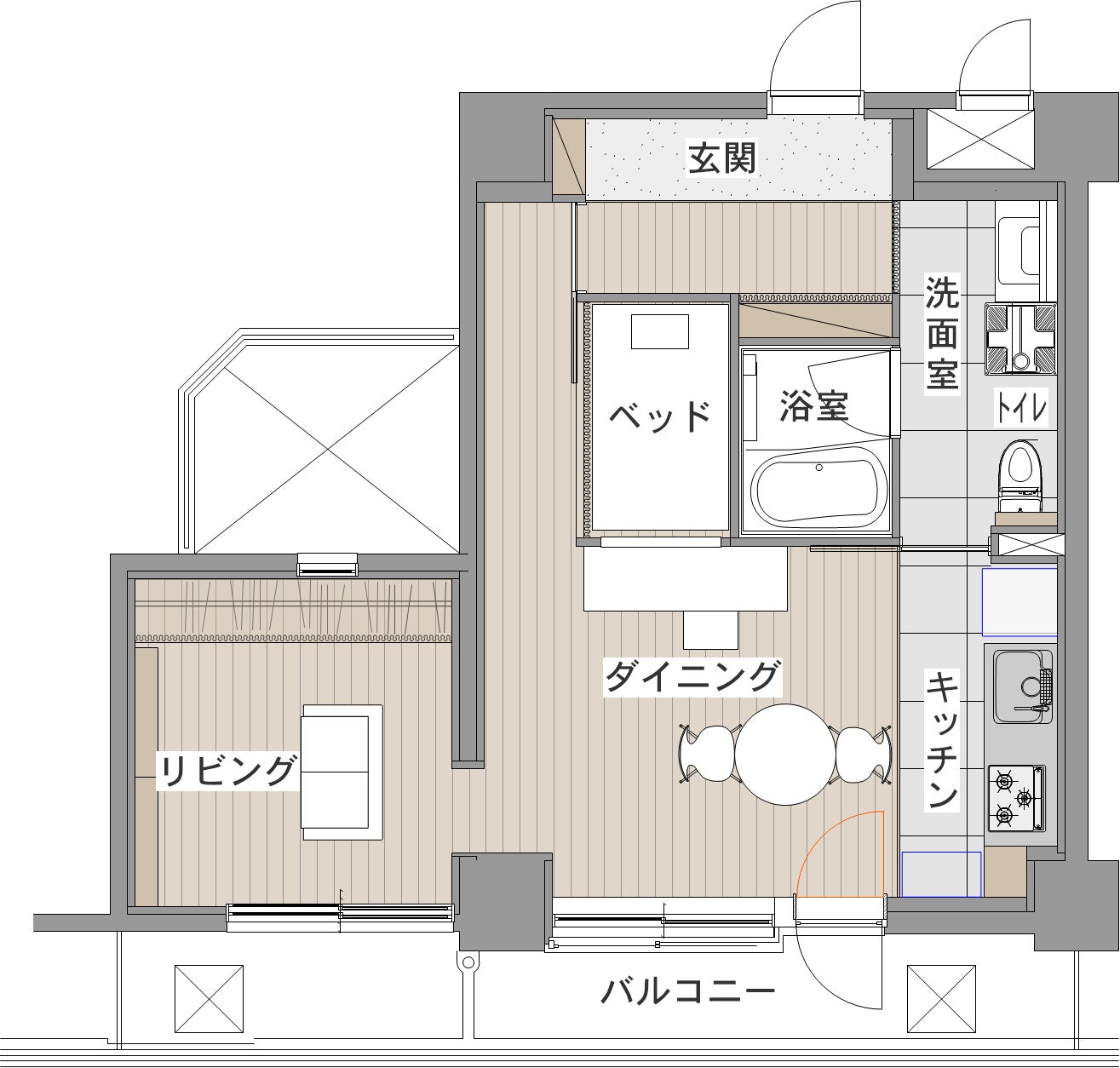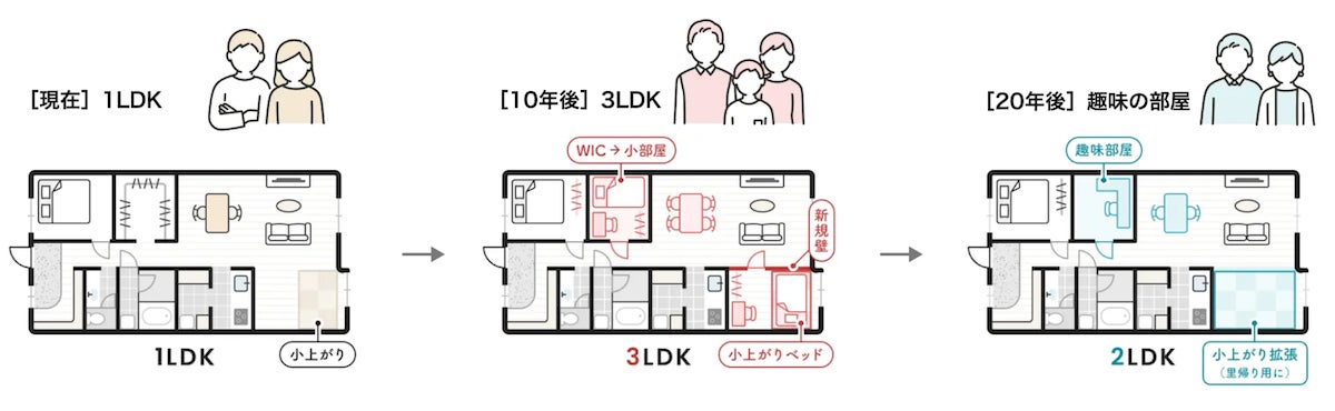 一般的な定額制リノベーションでは、間取りが定型化され「既製品住宅と変わらない」 ということもありますが、完全自由設計の『BASE』ならライフスタイルや生活動線に合わせた細やかな設計が可能。暮らしの変化に合わせて居住しながら間取りを変更できる可変プランも得意です。