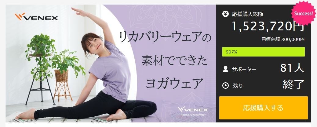 Makuakeプロジェクト、応援購入総額150万円越え!目標金額507%達成
