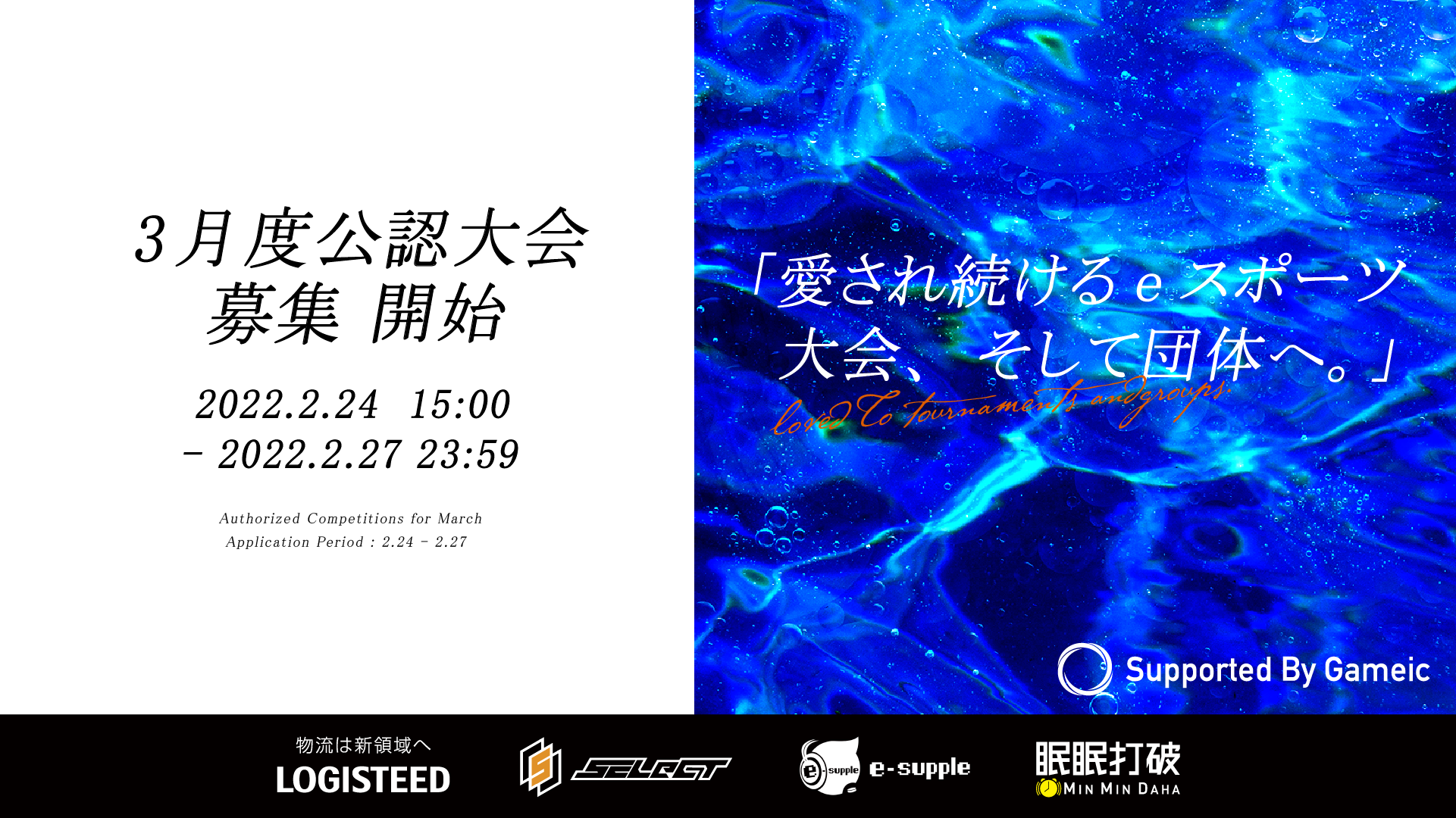 3月度公認大会への公募は、2月24日15時〜2月27日23時59分までの間、Gameic公認大会審査用LINE公式アカウントにて受け付けいたします。