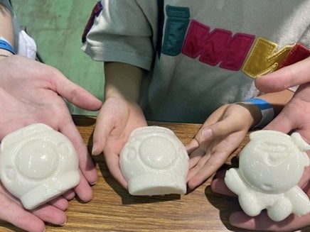 一方、無添加石けんの開発を依頼した国鉄を前身とする西日本旅客鉄道株式会社では、2025年3月に山陽新幹線全線開業から50周年を迎えます。この両社の記念すべきタイミングで今回初めて、50年前に開発した無添加粉石けんを受け継ぐ「粉石けんスノール」で新幹線の車体を洗浄するというイベントを実施しました。また、「粉石けんスノール」を使用して、このイベントならではの新幹線型石けんの手作りワークショップも開催しました。