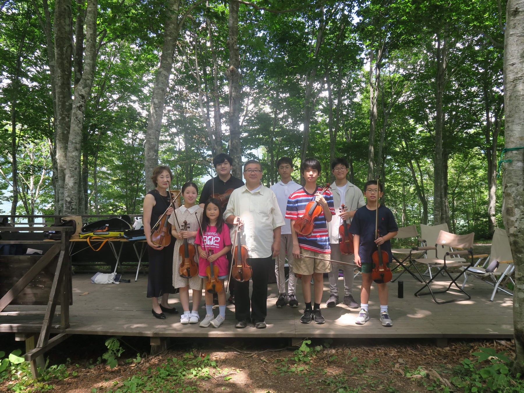 山頂エリアでは、東京音楽大学教授で日本フィルハーモニー交響楽団のソロ・コンサートマスターを務めるなど世界で幅広くご活躍されるとともに、若手演奏家の育成にも熱心な木野雅之氏をお招きし、木野雅之氏とセミナー受講生による演奏会を8月7日(水)に開催いたします。白馬が大好きな木野先生が毎年ヴァイオリンの合宿をこの地で開催していることを記念して生徒たちと森のステージで演奏します。優しいヴァイオリンの音色をお楽しみください。