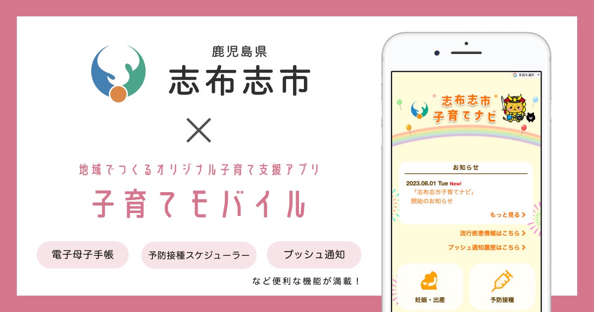 ミラボ、鹿児島県 志布志市で子育て支援アプリ「志布志市子育てナビ」提供開始